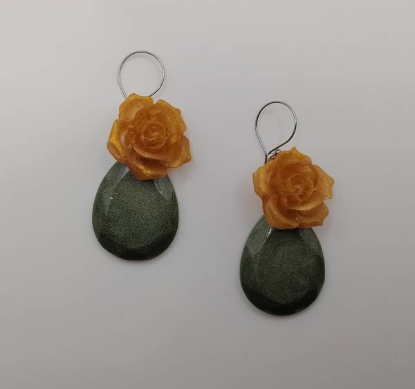 Σκουλαρίκια πράσινη σταγόνα και λουλούδι από υγρό γυαλί