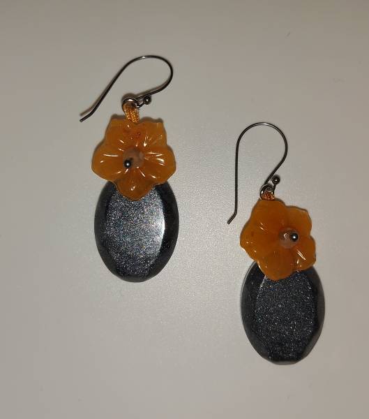 Σκουλαρίκια με οβάλ πέτρα και λουλούδι από υγρό γυαλί