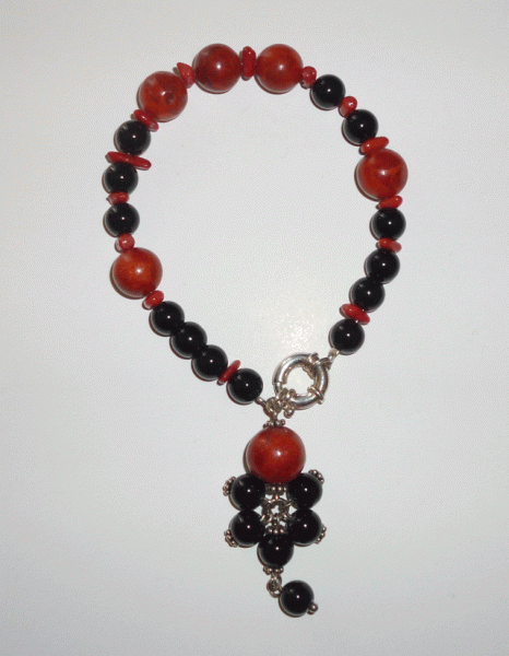 BLACK ONYX, CORAL, SILVER 925o